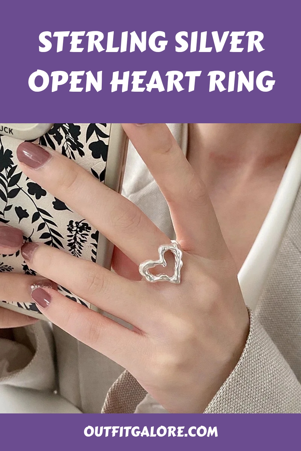 Sterling Silver Open Heart Ring – Bold & Artsy